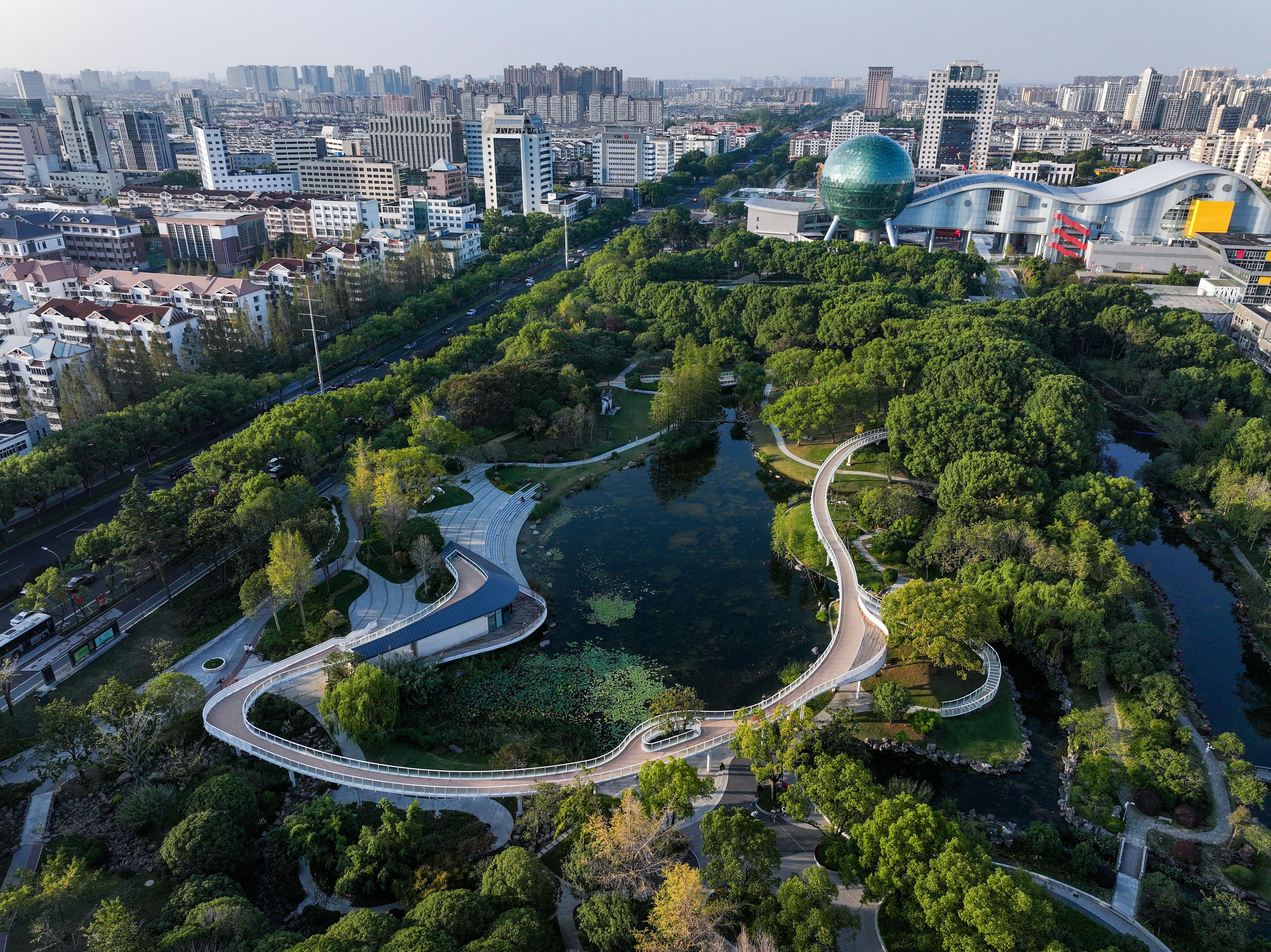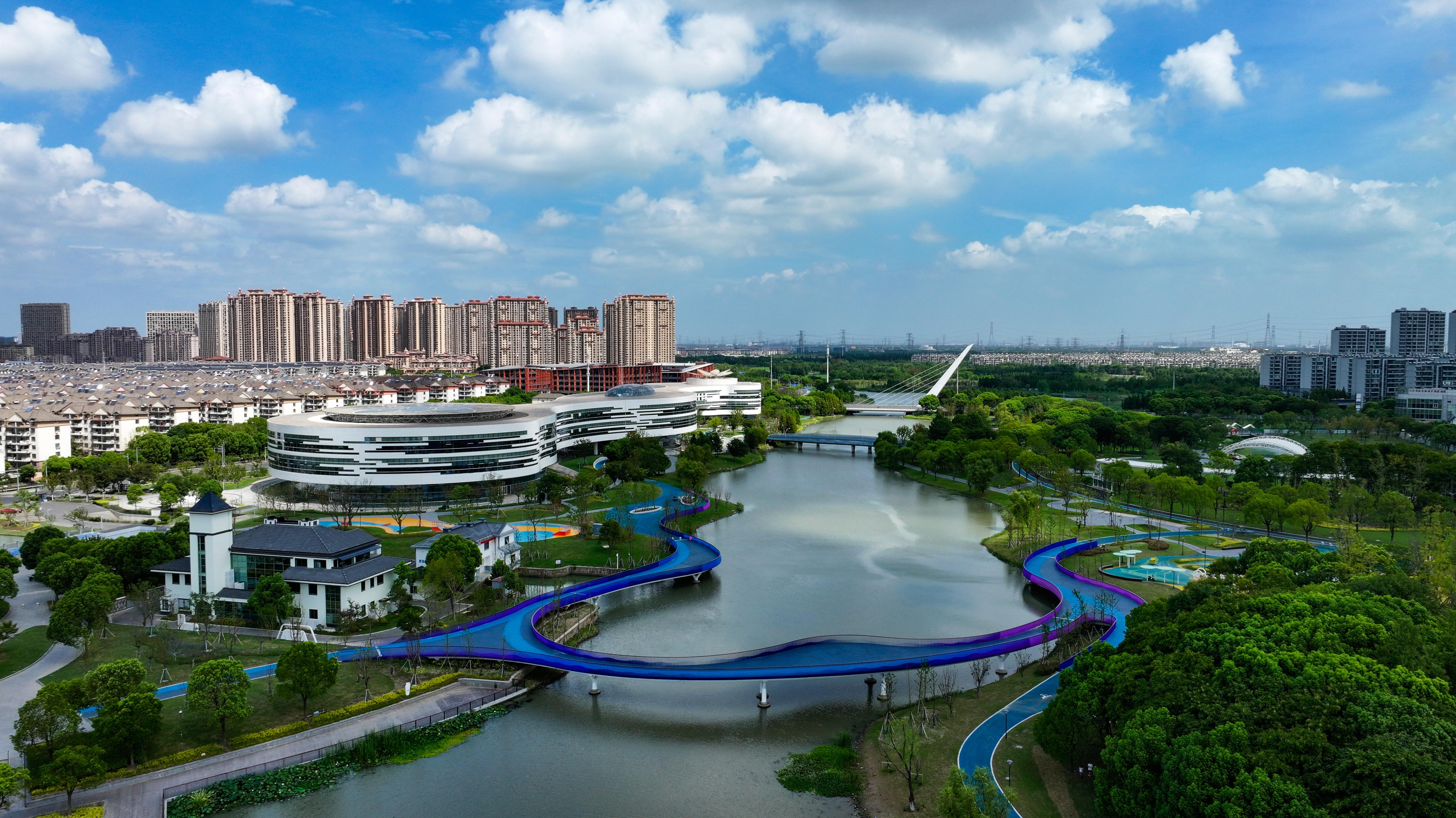 这是8月20日拍摄的昆山水之韵城市休闲文化公园(无人机照片)。 新华社发(王须中 摄)