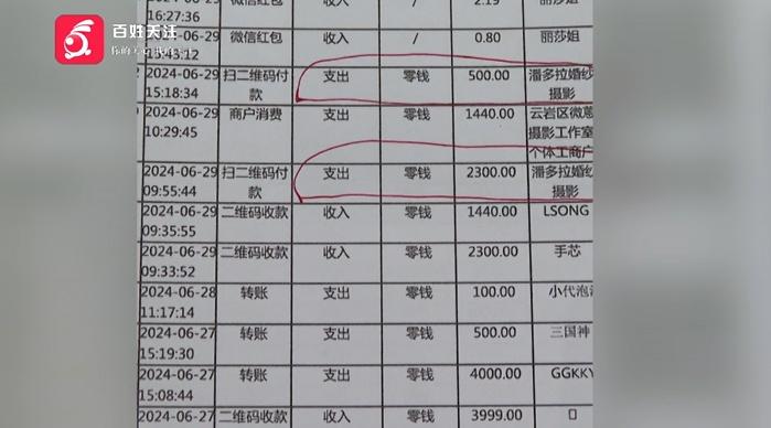 曾先生:客户说我已经付了,但我们没收到这笔钱,系统上面显示没收到,然后客户就把截图发过来,才发现这个钱客户在拍摄当天就已经是交了的,钱直接转到员工名下的账户上面去了。