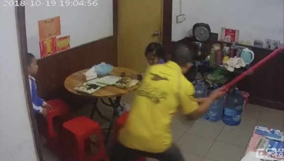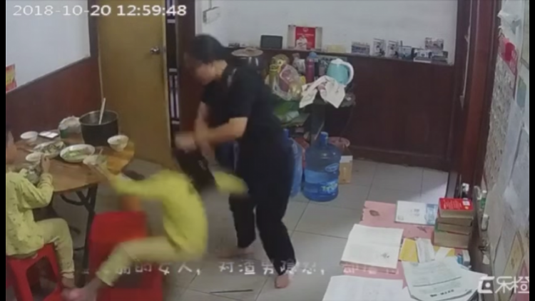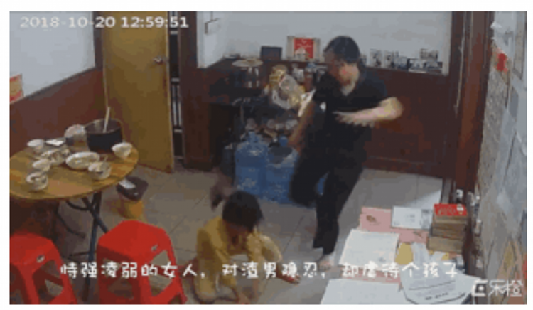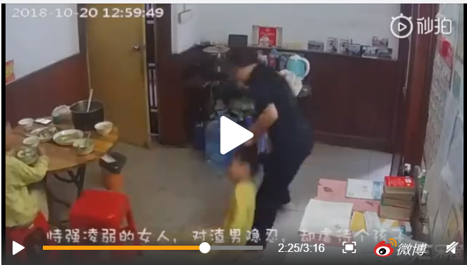 视频中被打女孩儿,既不还手也不逃走,每次受到虐待后,仍安静地走回座位坐下。而视频中出现的另一疑似其弟弟的男童,则似乎对女孩儿被虐待的情况司空见惯,不以为然。