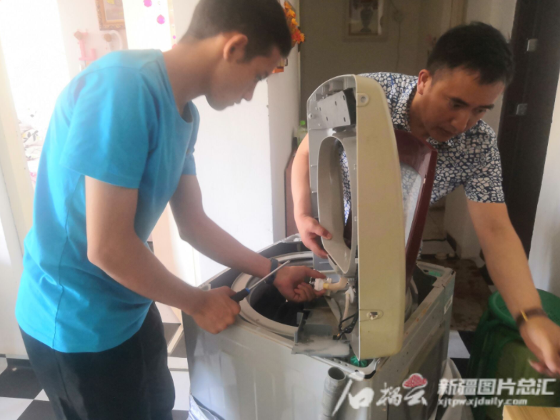 天山网讯(记者 赵西娅报道)“哎呀,转起来了!太感谢了!”8月6日,看着年久失修的洗衣机恢复工作,村民热依克木·阿不力孜露出欣喜的笑容。