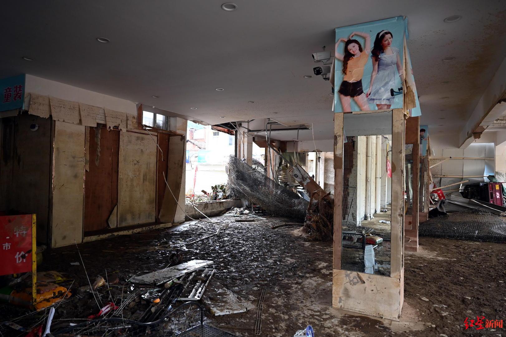 新生活超市紧靠柳林河,围墙已被冲毁 摄影 王红强