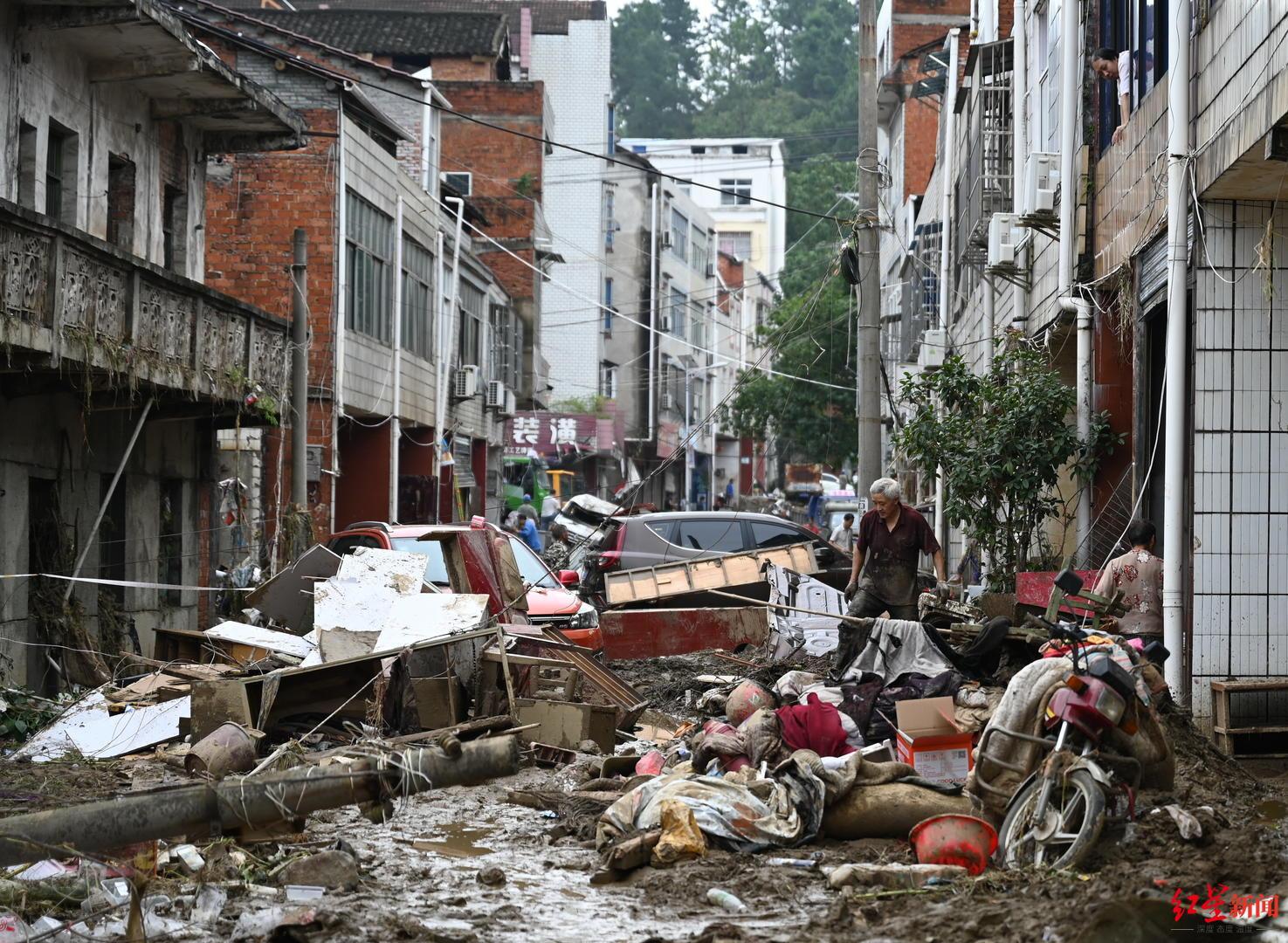 四点刚过,镇子西南端,一家浙江人在当地投资开办的机械厂里,一名40多岁的工人起来上厕所,发现洪水已经有小腿高。这名陈姓工人挨个敲门,叫醒了自己的妻子和20多名工人,衣服没来得及穿,众人就往后山上跑。“水追着脚后跟,什么都冲走了,衣服,手机都没有了。”