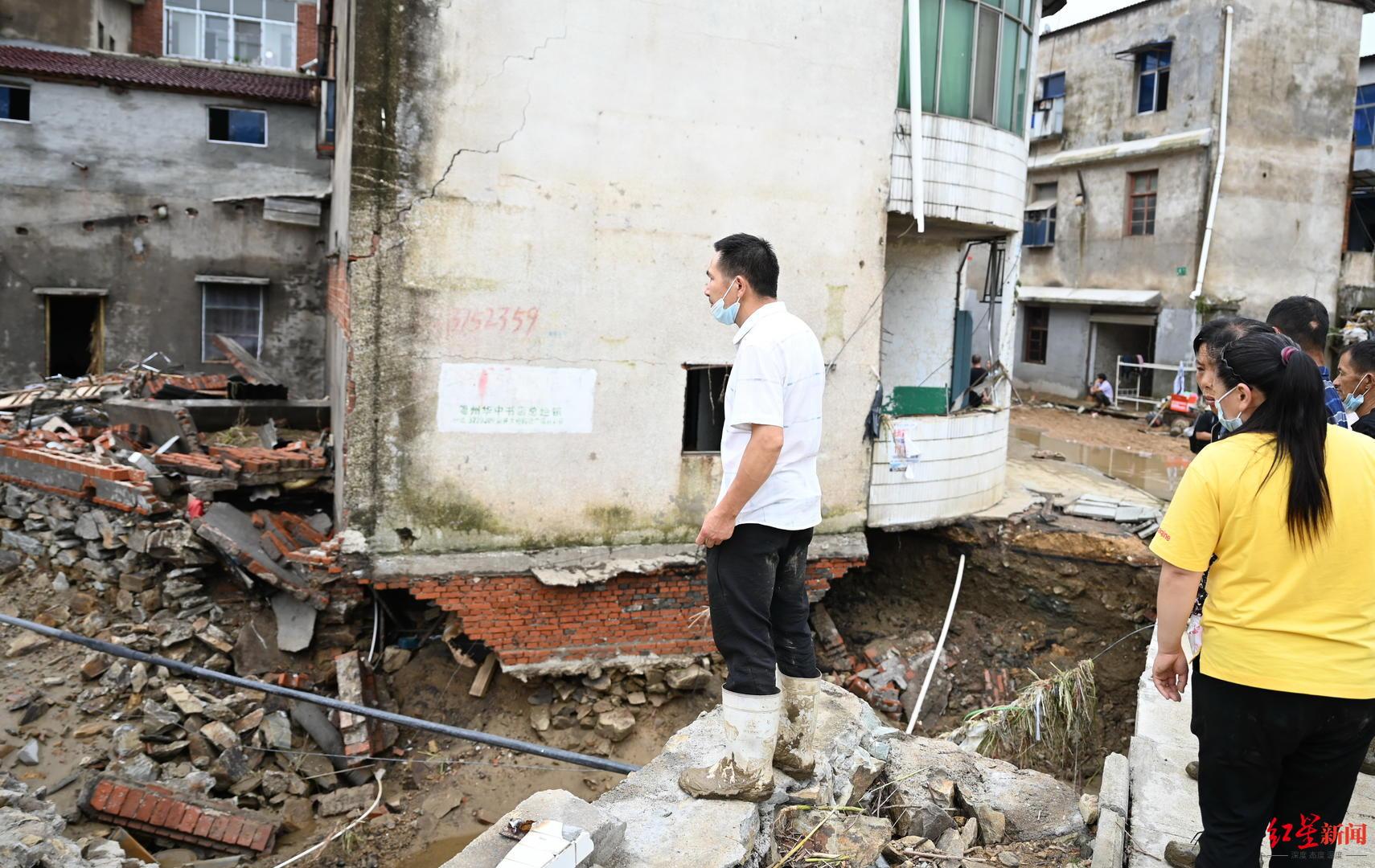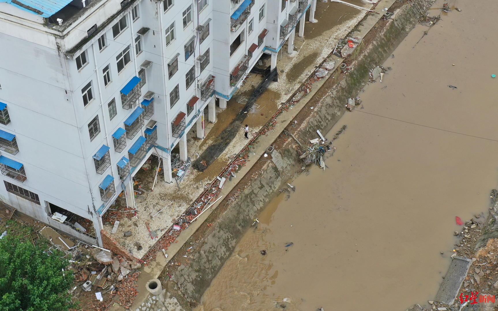 楼上的一名居民说,楼房是两名小开发商一起开发的,11年过去了,房款交清了,还没有拿到房产证。一楼原本就是几根柱子支撑,后来为了开超市才加了墙体,“没想到墙体这么容易就被水冲走了。要不然,她们两个人也不会被水冲走。”长期生活在这里的人,没有人不认识新生活超市的店员。这名居民愤怒地斥责说,“这是豆腐渣工程。”