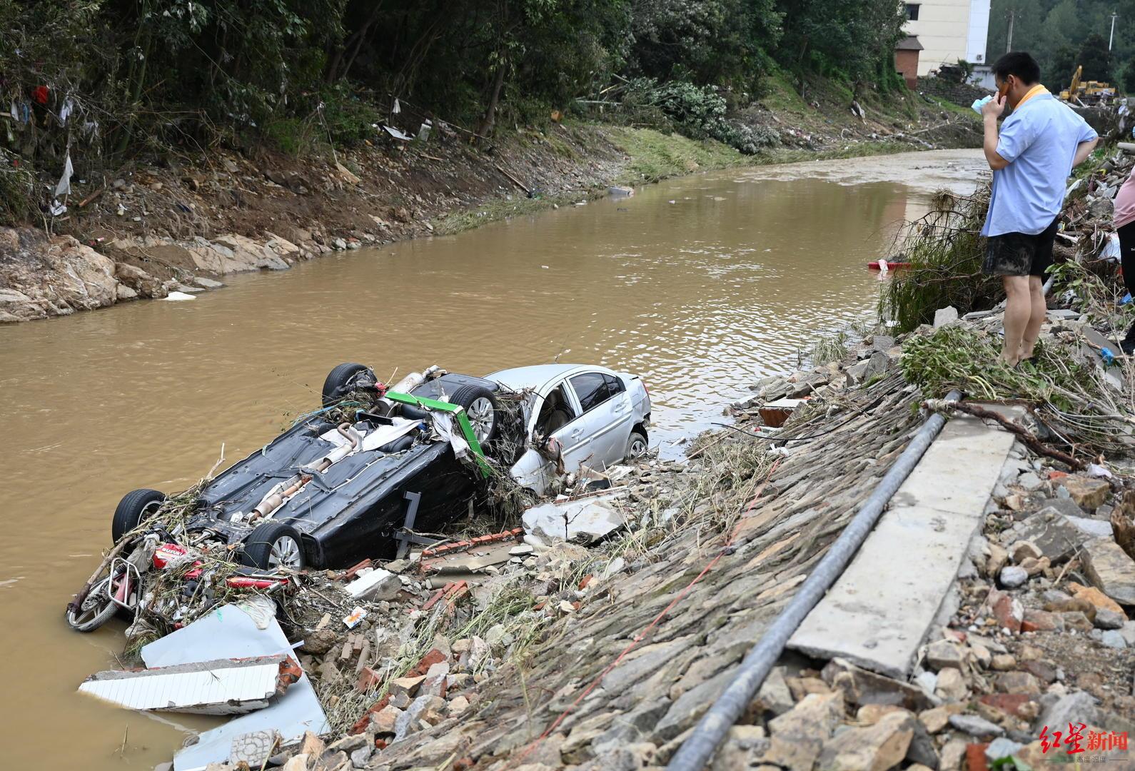 新生活超市“旧址”的左侧,通往镇政府的小桥上,不时有居民走过,他们中的大多数会俯身看着被冲到河道里的汽车和家具,表情平静中又带着些死里逃生后的庆幸。一场“百年不遇”的洪水过后,镇上的人家很少没有遭受损失的。8月12日,据当地政府初步排查,此轮强降雨造成柳林镇8000余人受灾。