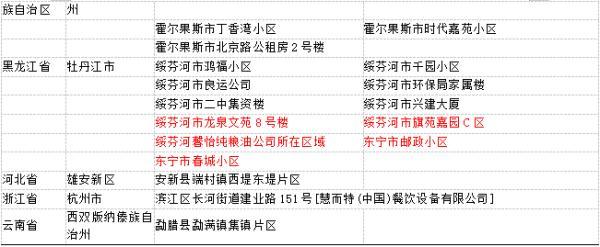 一、近期有黑龙江省牡丹江市东宁市、绥芬河市、林口县,绥化市肇东市;湖北省黄冈市罗田县;新疆伊犁州霍尔果斯市;云南省西双版纳傣族自治州勐腊县;浙江省杭州市滨江区;河北省雄安新区安新县;北京市丰台区、房山区;上海市奉贤区;天津市津南区、河北区;河南省许昌市禹州市,郑州市金水区,安阳市文峰区、汤阴县等地旅居史,特别是到过上述中高风险地区及与确诊病例或无症状感染者行踪轨迹有过交集,或接触过上述地区相关人员的市民,要密切关注上述地区疫情并立即向所在社区(村屯)报告并拨打居住地辖区疾控中心电话报备相关情况,按照要求执行相关防控措施。