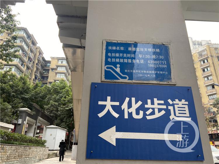 上游新闻热线966966近日接到市民反映:渝中区九坑子一座人行天桥的手扶电梯设计、运行方式不合理,给周边居住的老年人出行造成诸多不便。