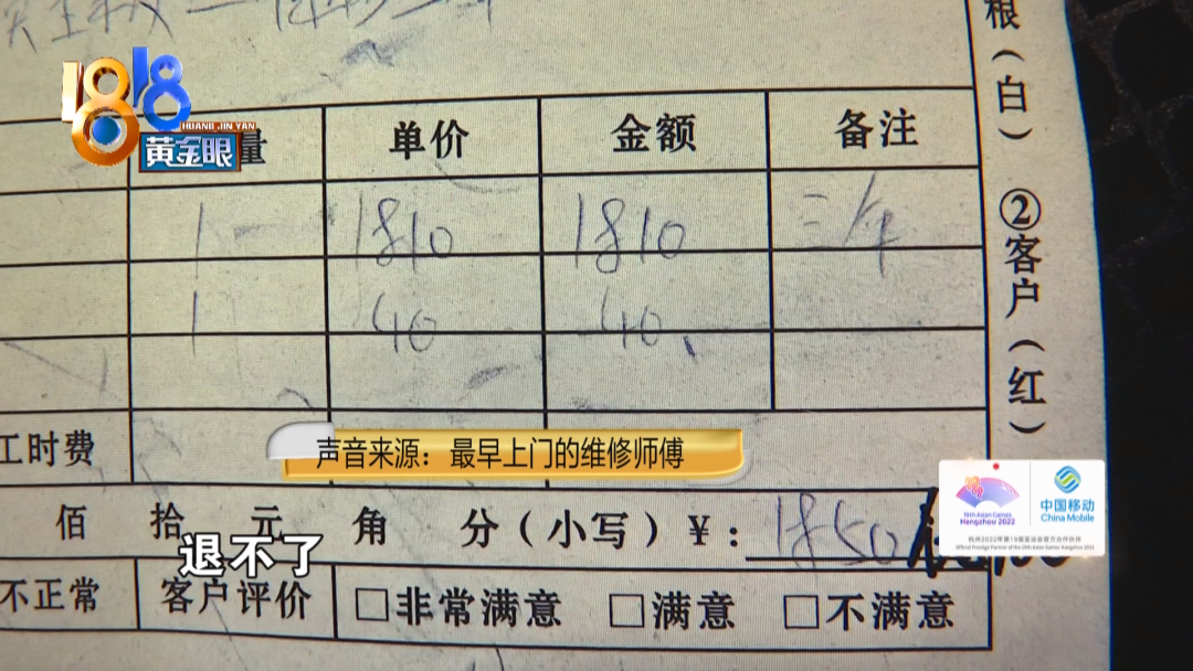 最早上门的维修师傅:退不了,是他自己不让修了,我们为啥要退给他,修了有半个月了,半个月之后再找我吗?他半个月之前为啥不找,他找官方是官方,我们又不是官方的,他找我们干啥?