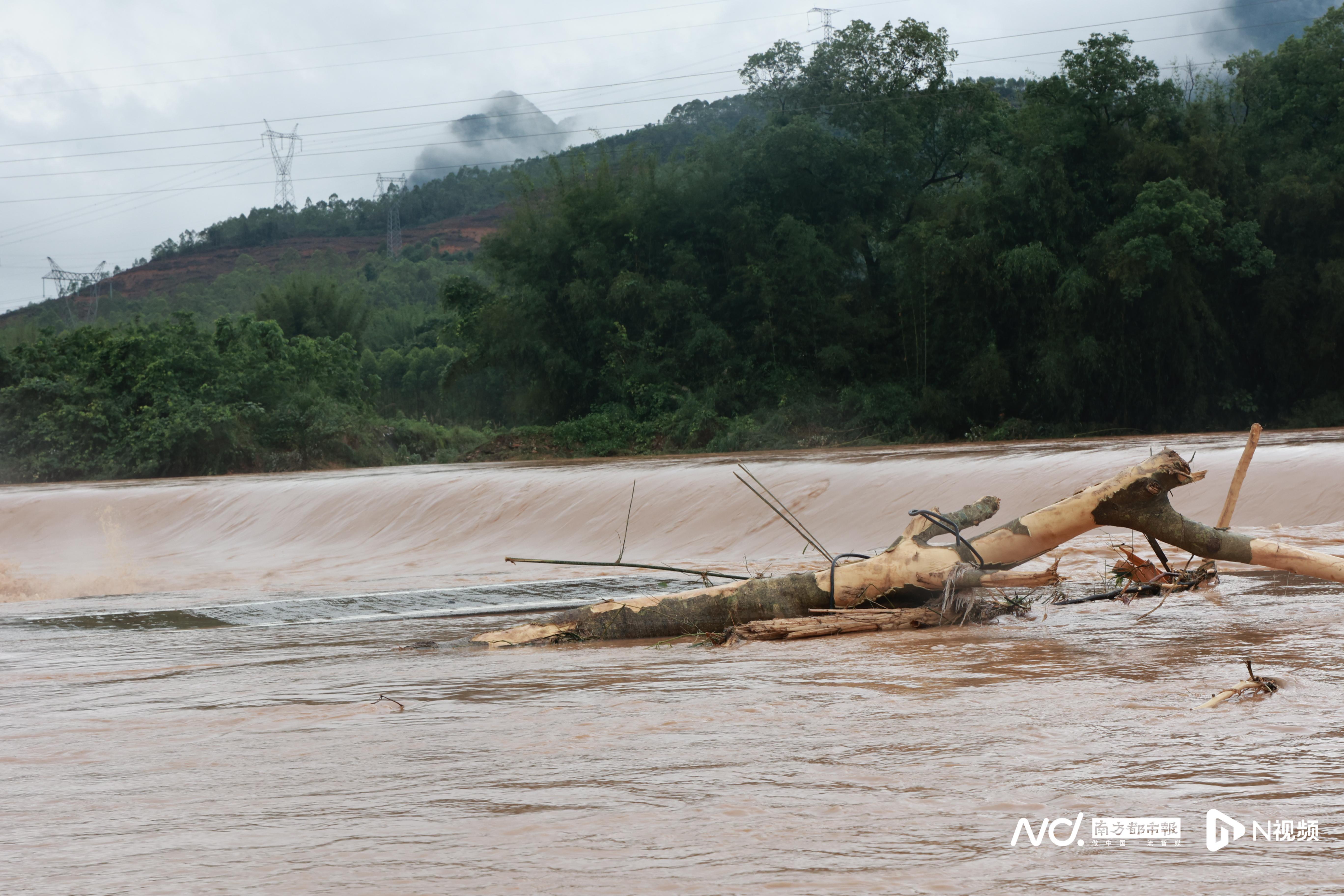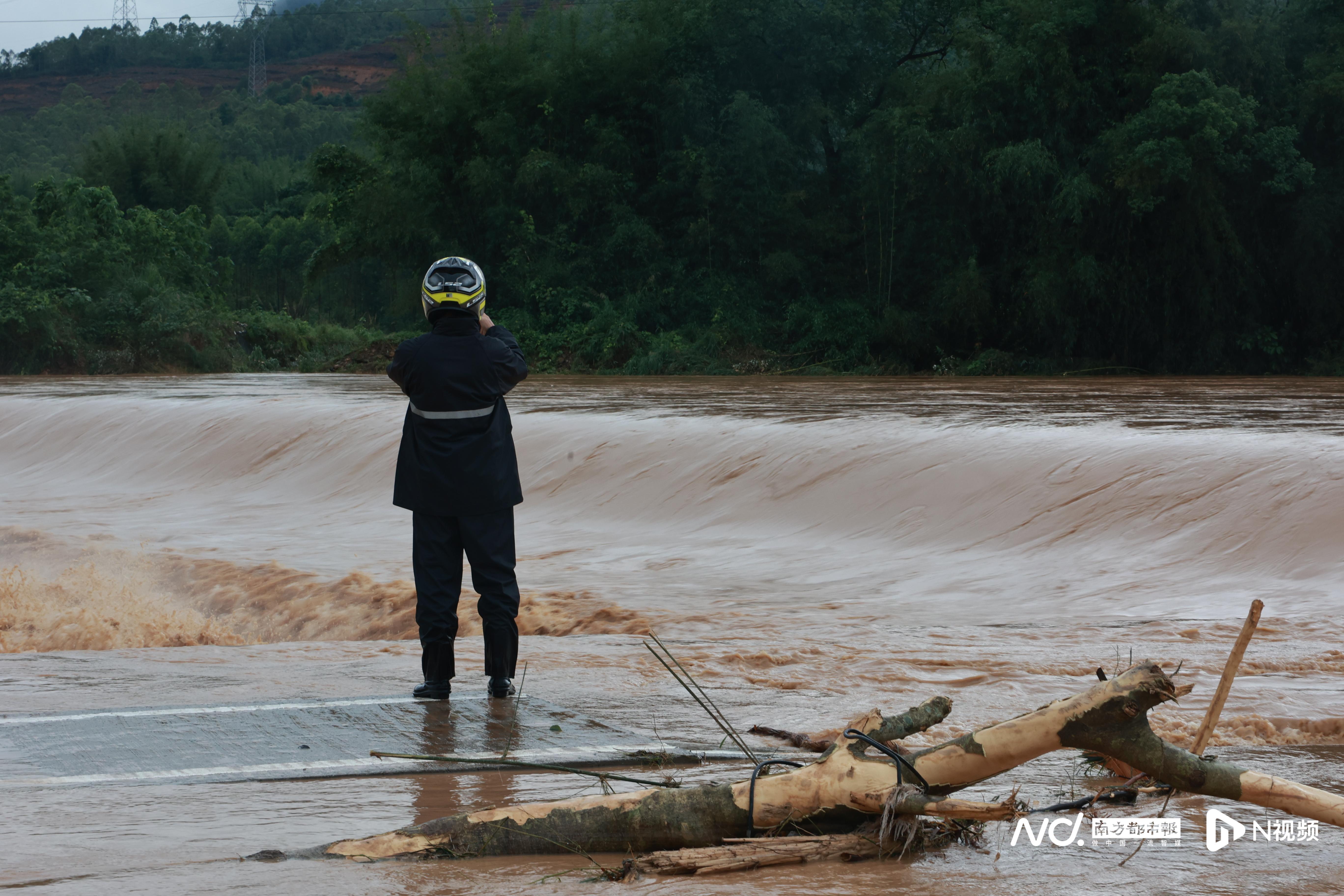 随着降水减弱,武江的南水河水位正在逐渐下降;此前水位暴涨,南水河一度与县道持平。