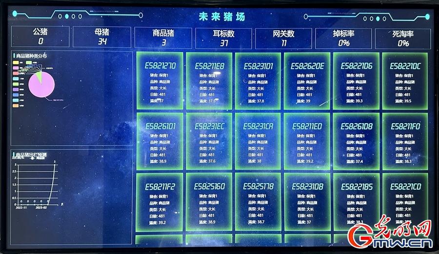 “未来猪场”大屏上显示的部分数据。(光明网记者 赵金悦摄/光明图片)