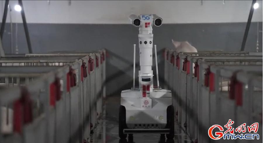 “未来猪场”里的一位机器人“员工”。(光明网记者 赵金悦摄/光明图片)