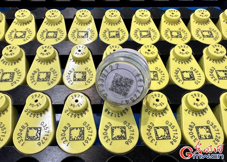 在“未来猪场”,每一头猪都有唯一的“智能猪耳标”。(光明网记者 赵金悦摄/光明图片)