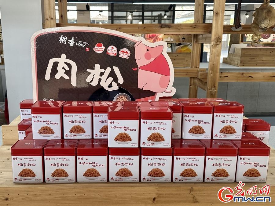 园区里展示的“桐香”品牌猪肉产品。(光明网记者 赵金悦摄/光明图片)