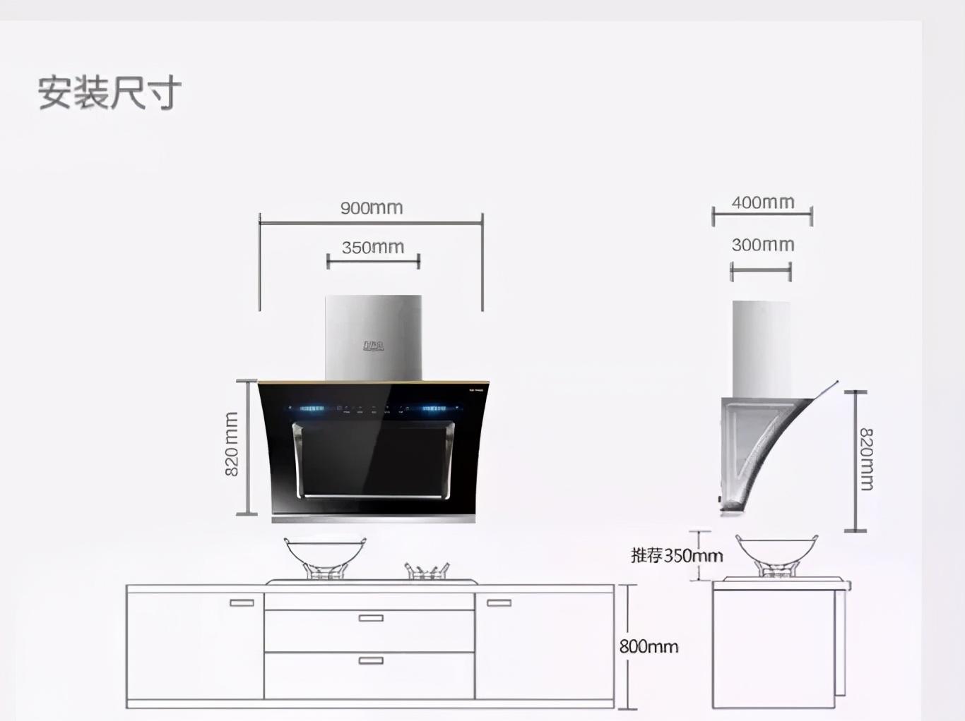 1.安装环境:油烟机需要安装固定在平整的墙面,周围尽量避免靠近门窗,容易对油烟机吸力造成影响。