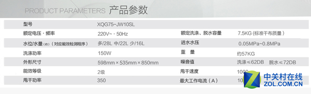吉德(jide)XQG75-JW10SL洗衣机参数