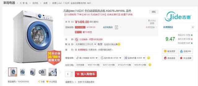 吉德(jide)XQG75-JW10SL洗衣机京东售价1499元
