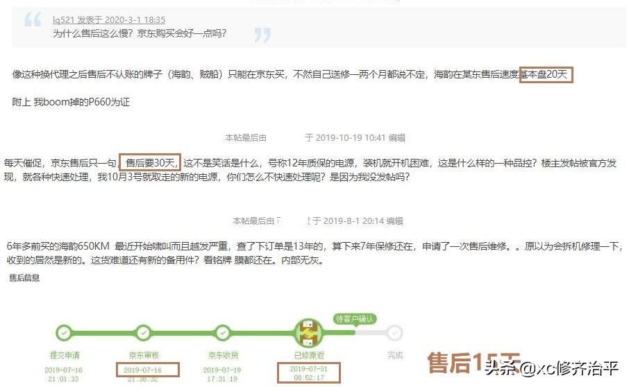 Chh论坛上的评论大多指向"售后时间的问题",这不代表海韵的售后不好,而是海韵售后体系中售后时间实在太长。