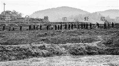 图为相关人员参观调研陕西安康汉滨区县河镇财梁社区三分粮田虾稻园。 王布悦 摄