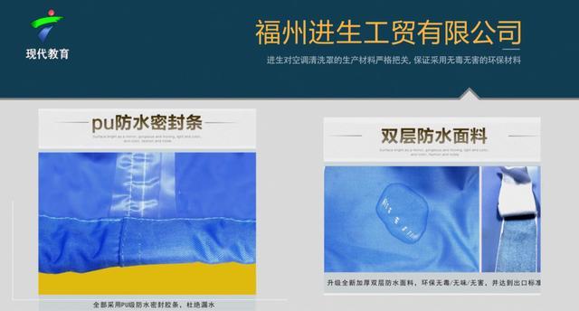 1)、在材料方面,进生生产的空调清洗罩采用的都是高端、全新的环保材质,拒绝使用再生材料,因为这些再生材料会有刺鼻气味影响健康。而进生的空调清洗罩只使用环保材料,确保无毒无害、没有刺鼻气味,不影响使用者的身体健康。