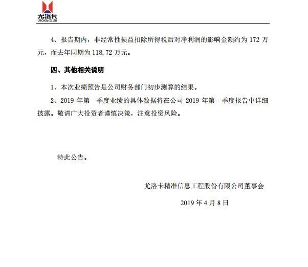 江龙船艇预计2019年一季度盈利70万元-130万元,上年同期亏损176.15万元。
