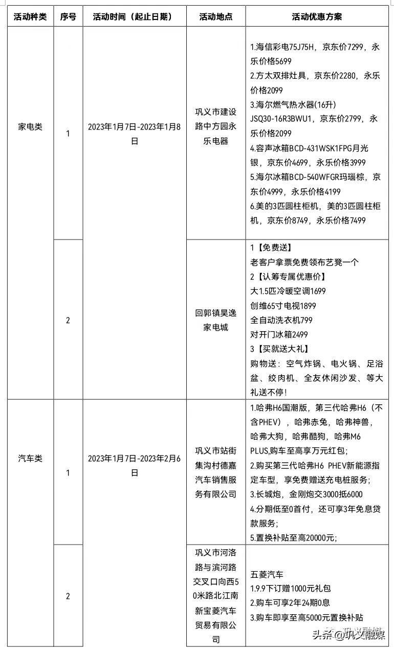两大家用耐用品促销活动的盛大开启,将进一步丰富巩义市节日市场的供应,优化消费服务,让企业得到更多助力,让市民得到更多实惠。巩义市商务局将会全程做好工作保障,积极组织本地优质企业参与,为广大市民搭建一个荟萃优质汽车、家电采购的消费平台,让市民得到更多优惠,实现2023年经济发展的良好开局。