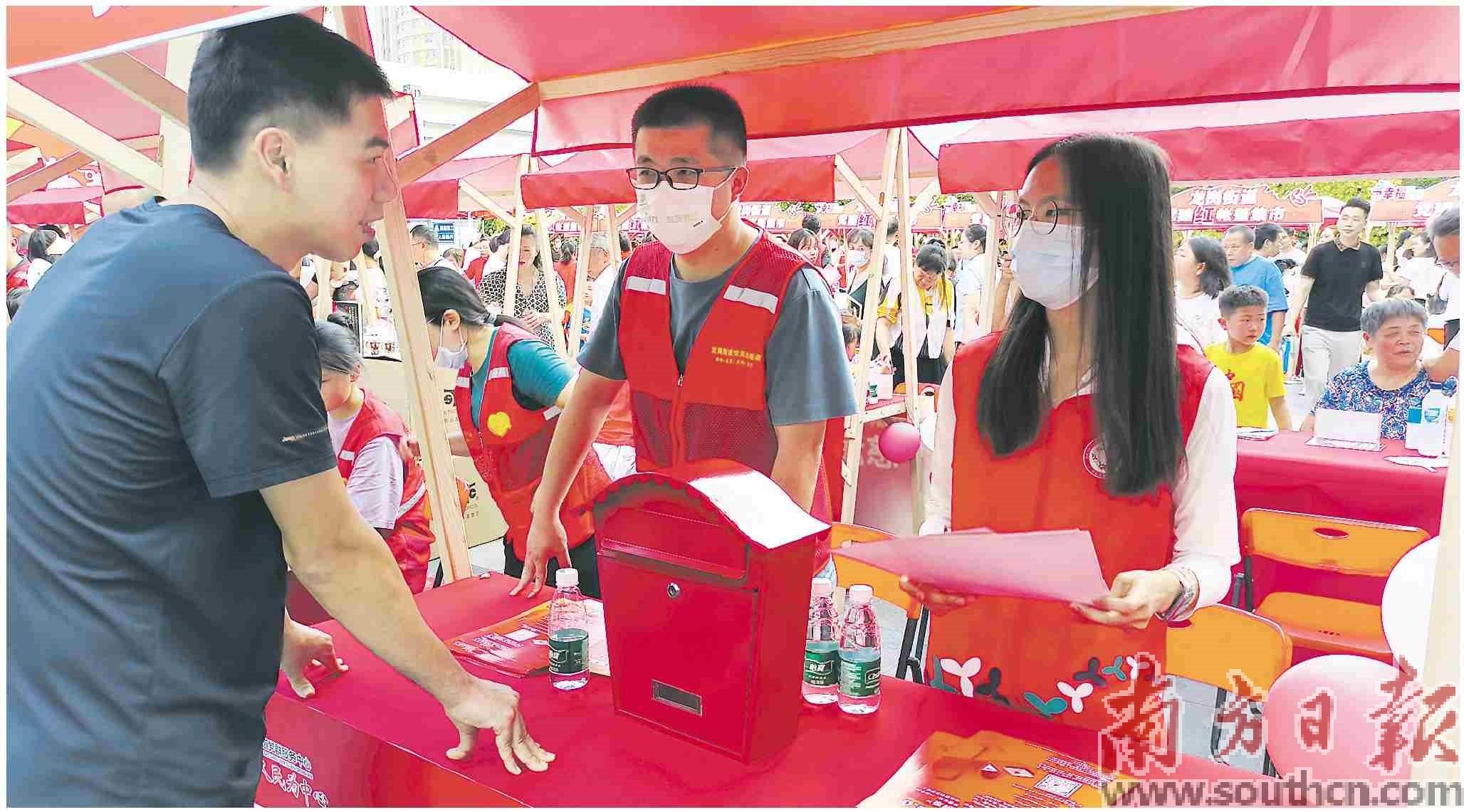龙岗街道“幸福生活节”启动仪式暨“党建红帐篷”集市活动现场,“红信箱”正在收集民众诉求。受访单位供图