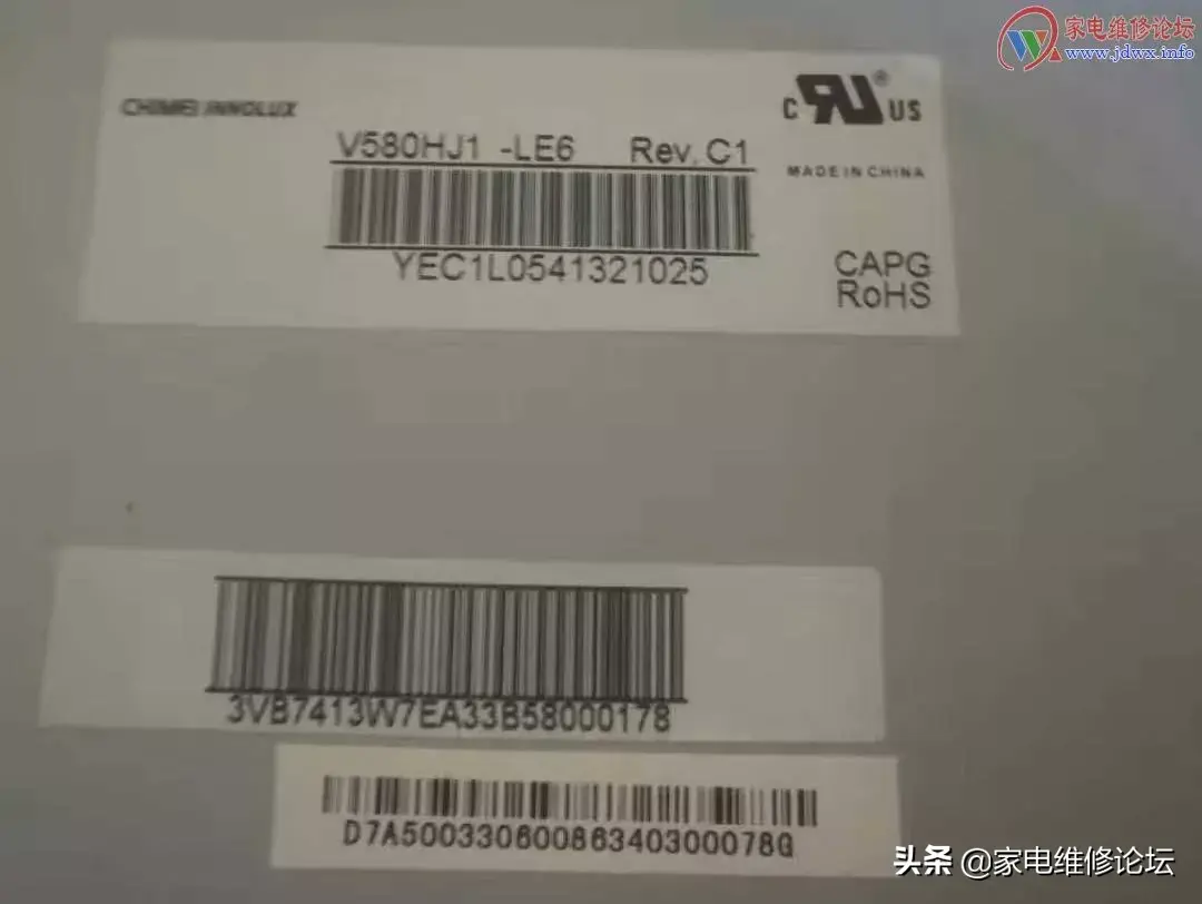 只是左边拖尾发暗。听说奇美屏32寸以上两边都有对称的耳朵(TAB),开撕。小心翼翼拆开屏大框,不要拿出液晶玻璃, 用卡片插入屏左边中间缝隙。再用手指顶住。看到左边6个耳朵,一个个撕,撕一个开机看一下: