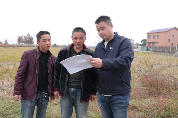 高塘岭街道新阳村党员下户,推动万亩高标准农田建设工作