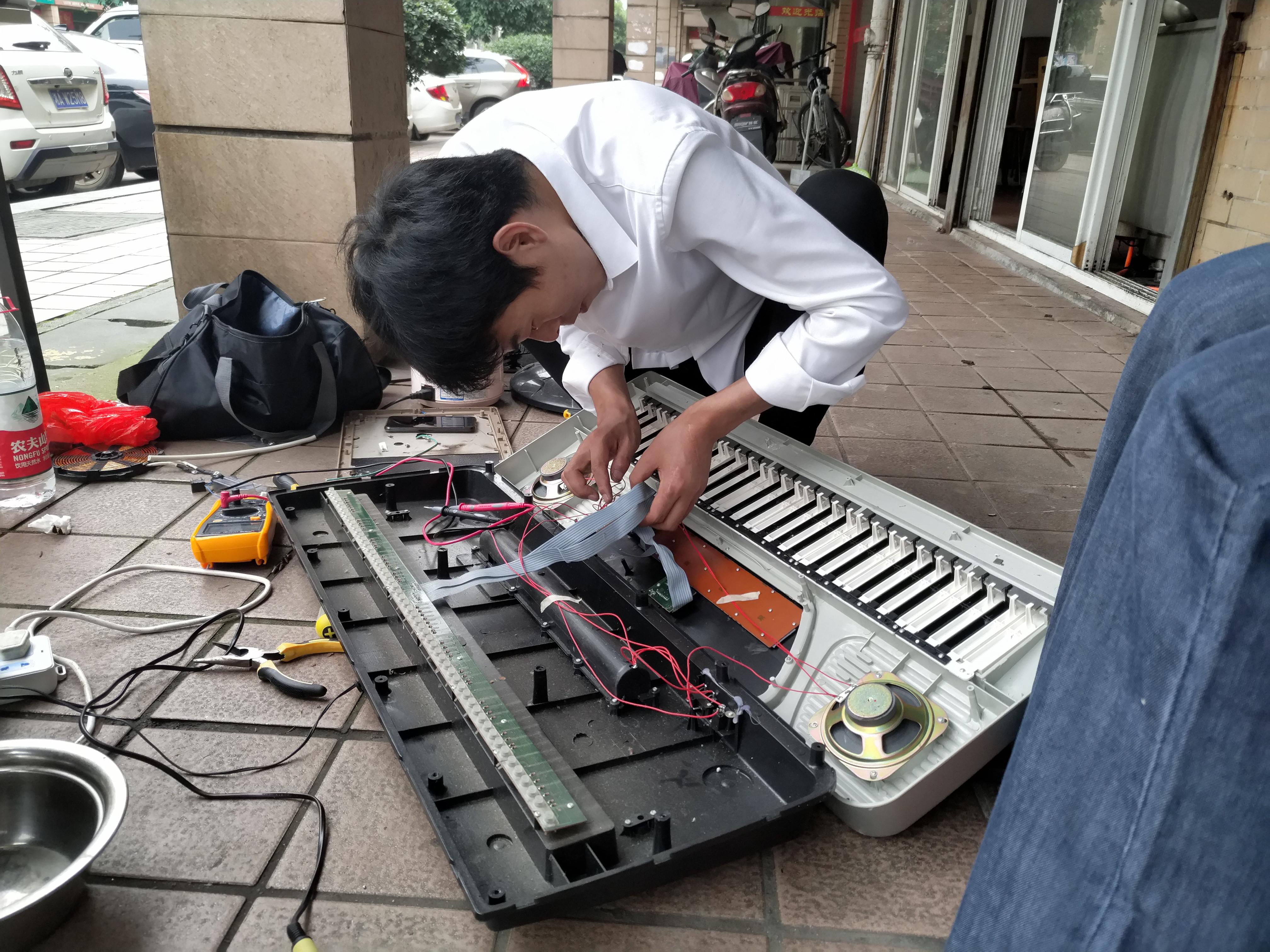 折腾了10多分钟,小伙子告诉老大爷,这台电子琴里面的电板坏了,必须更换。