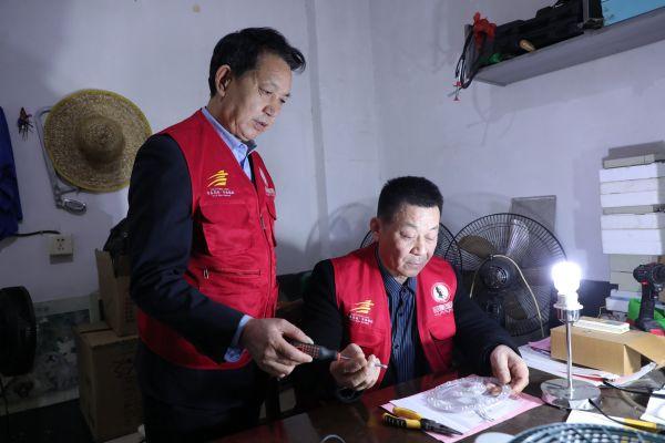 尚鑫在检查市民陈先生的风扇电机