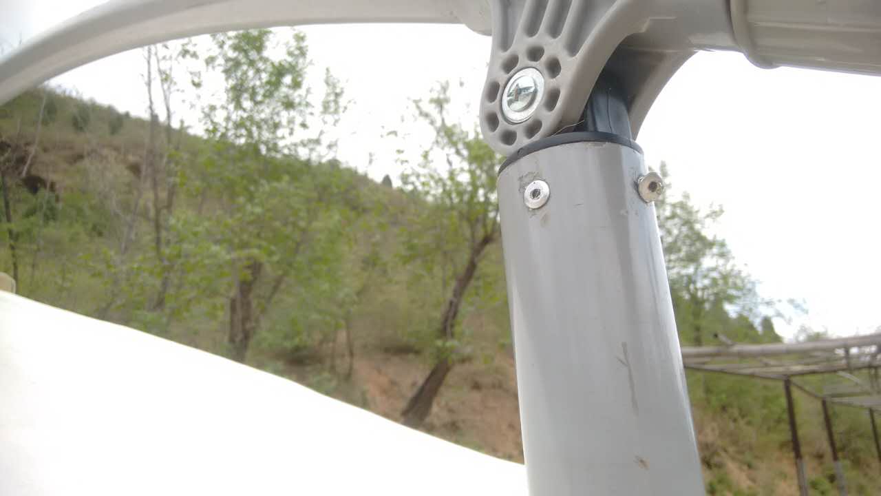 前两天刮大风,把俺院子里的遮阳伞吹倒了,这次不幸,直接把转向支架摔断了。致电客服,被告知已经超过了质保期,并且没有配件购买,只能买新的,呵呵,别扯了!俺自己想办法修!