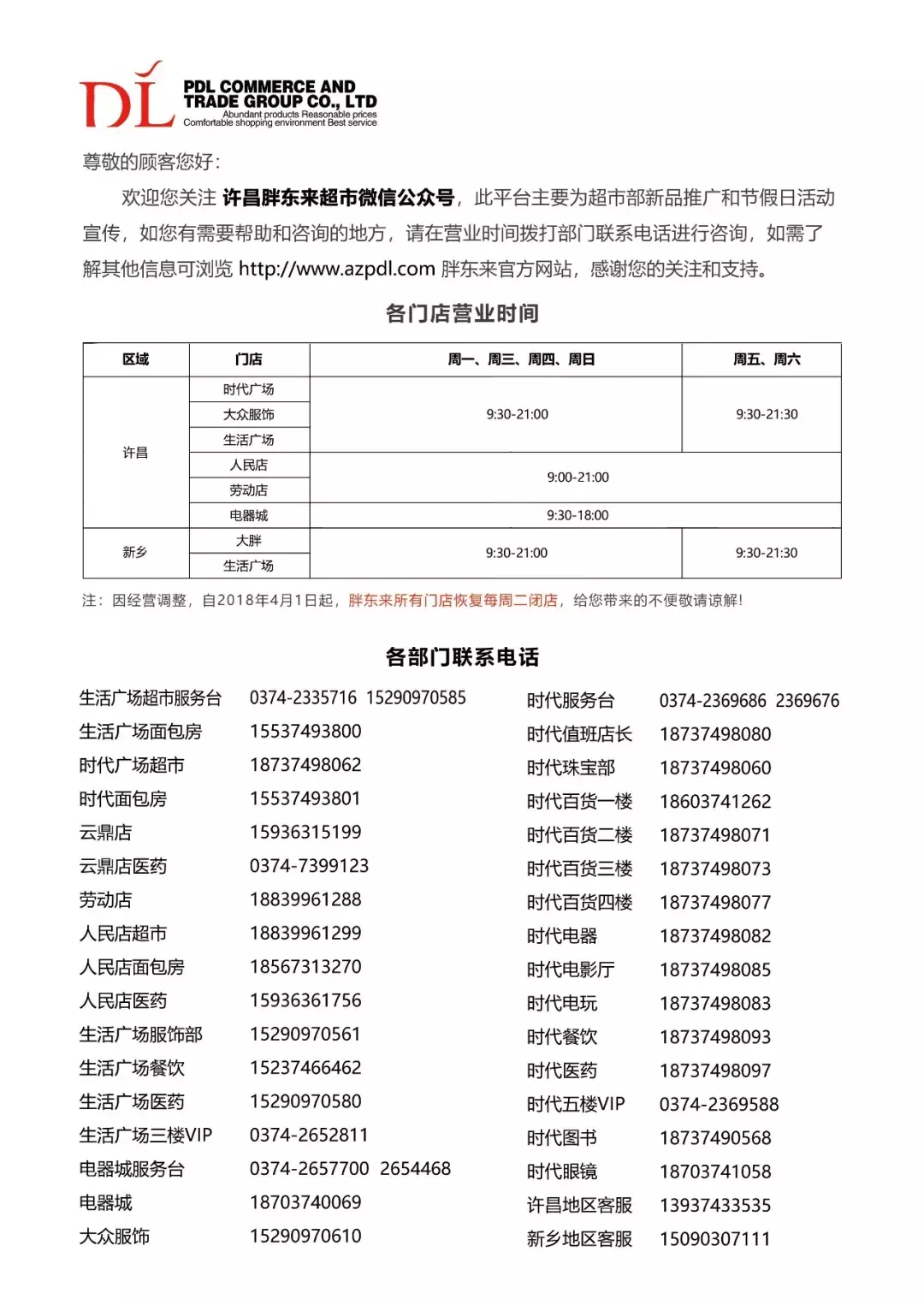 许昌胖东来两店服饰部服装(鞋)售后维修规则调整,2019年8月26日执行 ,请您购物后保留好购物小票 ,以便我们更好的为您服务。给您带来的不便敬请谅解,感谢您的配合!