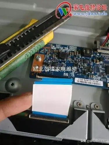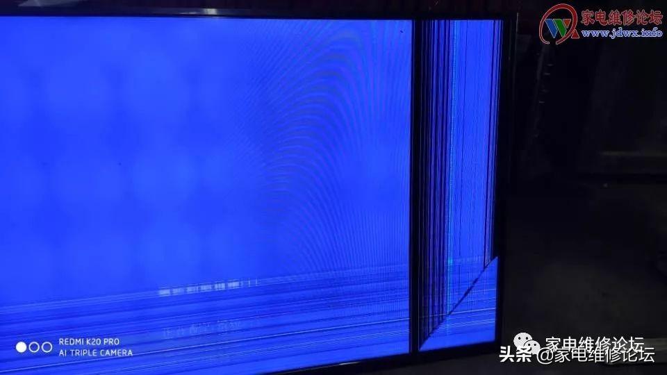 上周就听说她家的电视有声音没图像了,今天休息带上工具过去帮她处理一下,虽然多年不做维修,但工具依旧保留了下来,这是一种对家电维修的不舍情怀。这是一台55寸的TCL,一年前换过灯条。现在猜测也有可能是背光再次损坏,打开电视一会传出伴音,屏不亮,从后面也没看到有背光,强光下屏见有图像,判断还是背光问题,拆下后盖,测量背光电压5Ov左右很快消失,用工具大电流档可点亮背光,翻过来看蓝屏有不均匀的光斑,再开屏,发现有多个LED灯球不亮,到附近朋友店里找来几根灯条换上,开机正常发光,大功告成。小心装回液晶屏,没想最后边框用力压下去象听到玻璃碎裂的声音,感觉坏事了,装好接线通电,屏裂了,彻底报废。希望朋友们拆装液晶屏小心谨慎,不要步我后尘。屏是很脆弱的,至此只能换新机了。