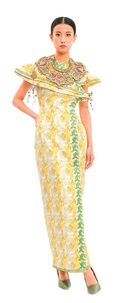 崔荣荣团队为“中法时尚之约:丝路遗产创新设计时装发布会”设计的“丝绸之路”礼服。