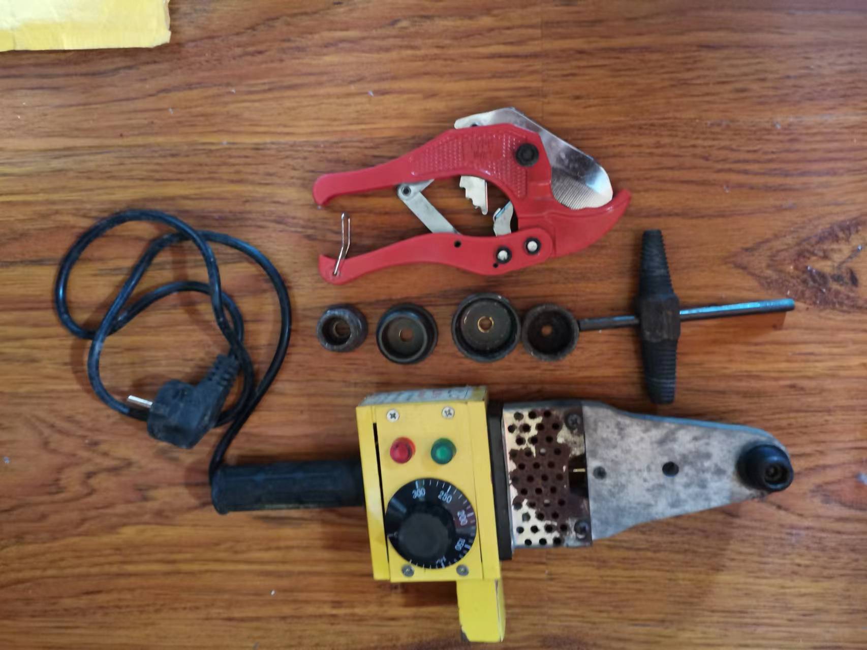 二、水工工具。 配备有热熔器,各种大大小小不同型号的扳手、套筒、水管取出器。还有铁鎯头、木鎯头、钢凿和管子钳。