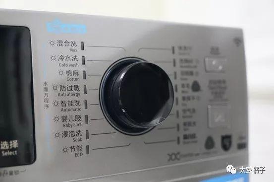 细节方面,小天鹅洗衣机也做到了精益求精,比如这个功能旋钮,就做了一个透明的设计,看起来很有科技感。