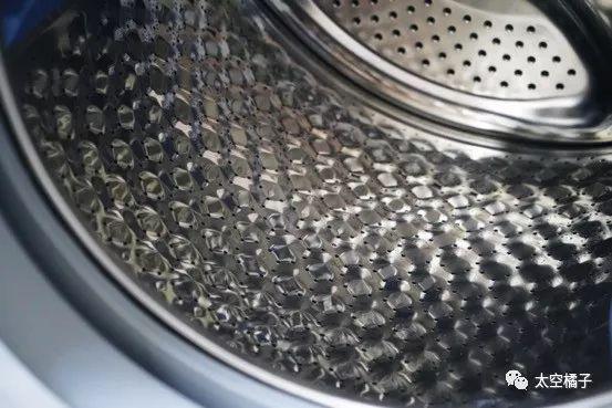 机器的内筒采用的是不锈钢,上面的格梗和花纹主要是为了进一步增加摩擦力,而且小天鹅使用了3D设计,模仿搓衣板。