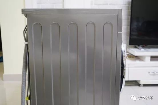 机器的侧面采用了金属钢板,一体成型,质感也不错;因为机器自带烘干功能,会产生热量,主要也是从侧面散出去。