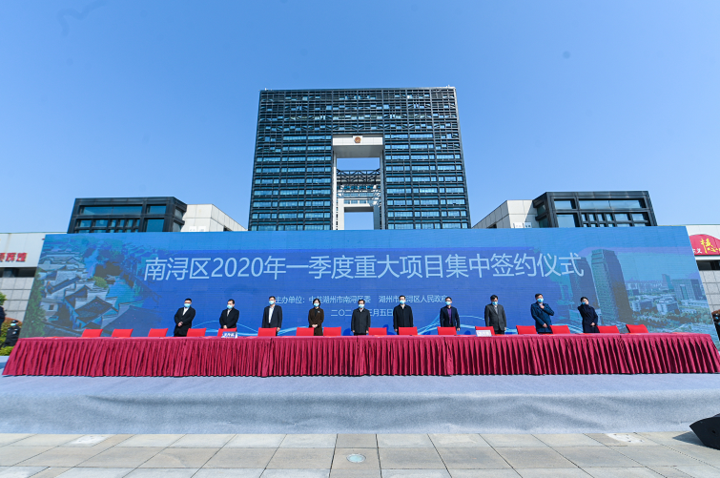 3月5日,南浔区在区行政中心外广场举行第一季度重大项目集中签约仪式。当天,40个产业项目集中签约,总投资218.58亿元。其中,20亿元以上项目2个、10亿元以上项目10个。