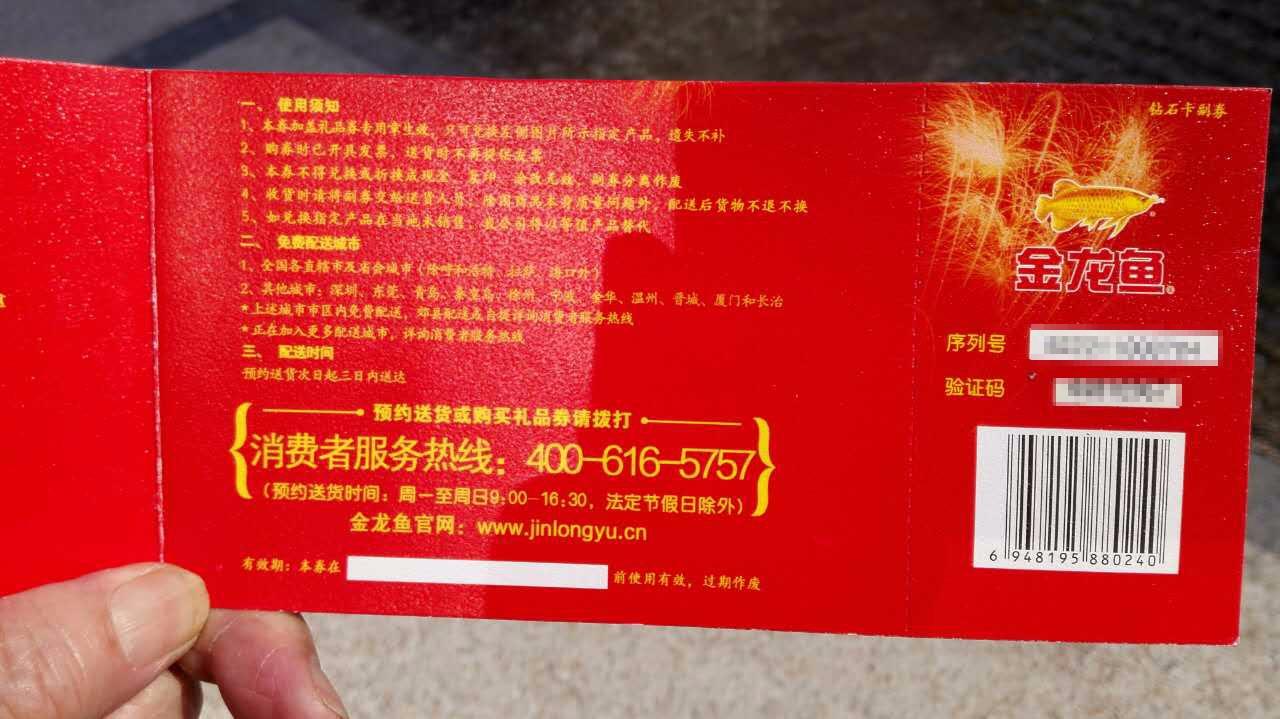 持金龙鱼“金玉满堂·钻石卡”预约送货