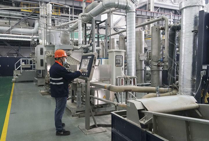 2023年10月26日,工人在位于湖州市安吉县的威立雅华菲高分子科技(浙江)有限公司造粒车间查看设备状态。新华社记者 林光耀 摄