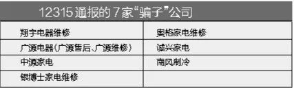 同时,南宁市工商局12315消费者投诉举报指挥中心发布家电维修虚假信息名称的名单: