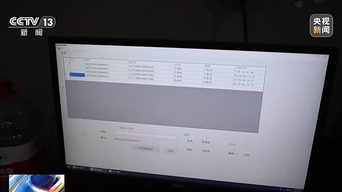 这些废旧家电在手机小程序上会明码标价,回收后先被运送到分拣中心进行分类入库,等待送往下游拆解销售,每个家电上会贴上二维码,工作人员扫一扫,就可以将相关信息录入到大数据平台。