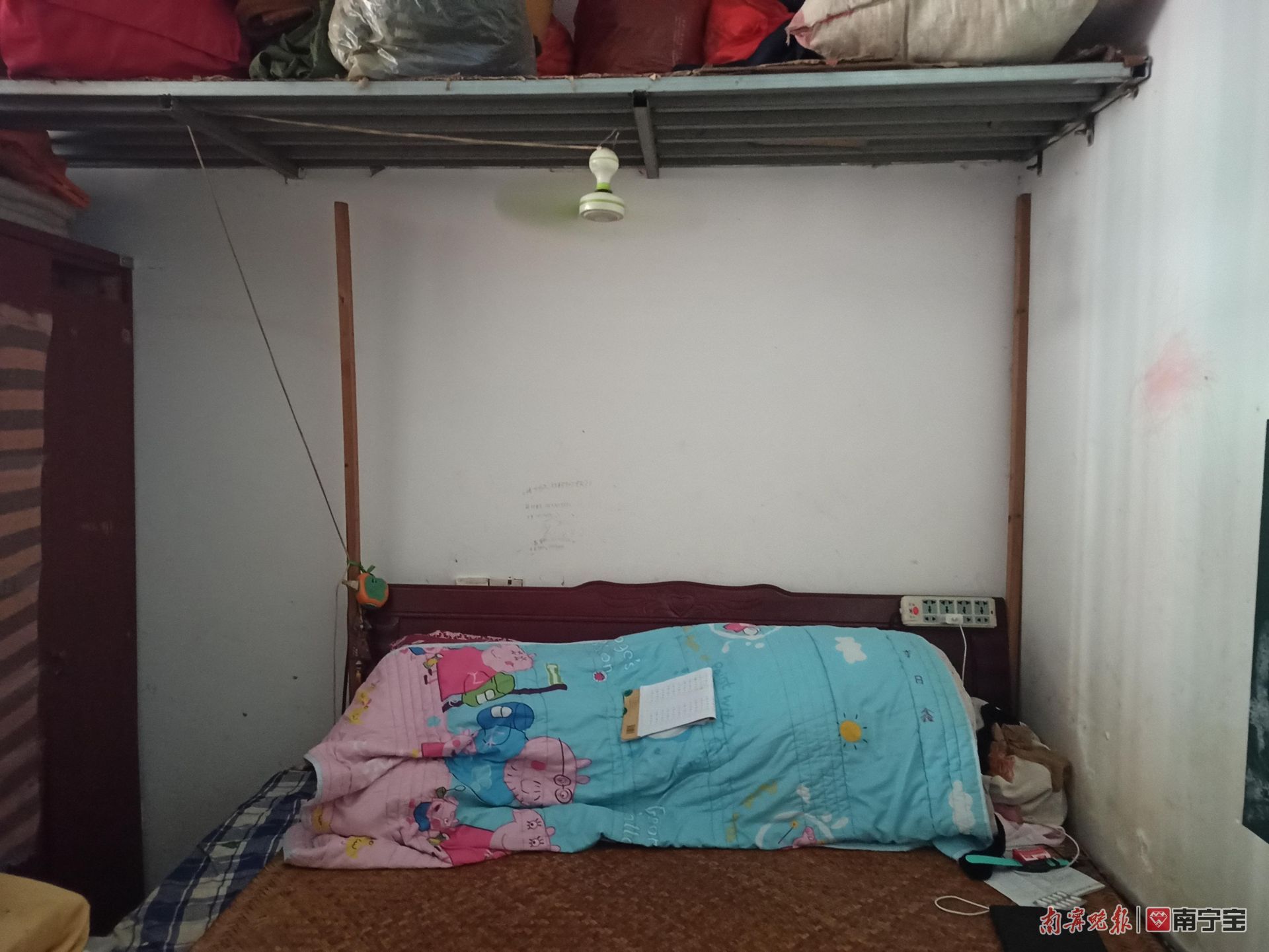 黄秀峰睡觉时,只能靠床上方悬挂的小风扇降温