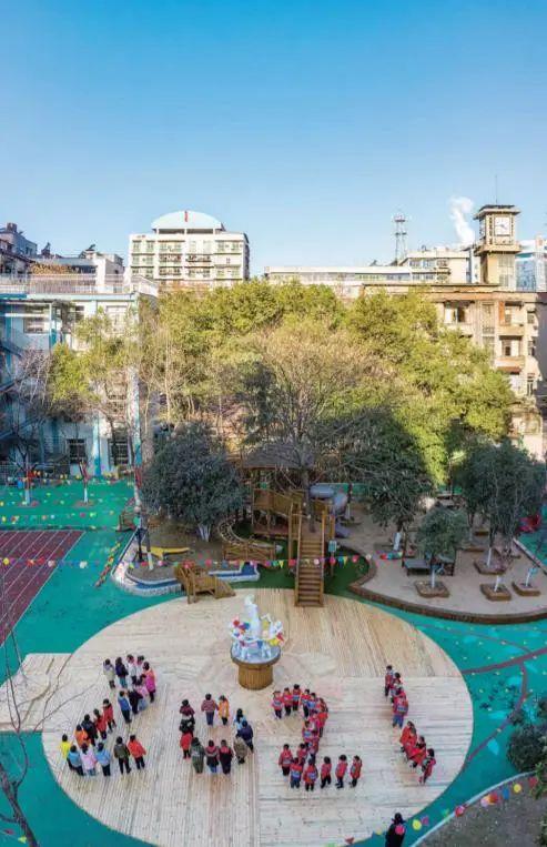 市政府机关幼儿园的孩子们摆出“2021”的数字造型。