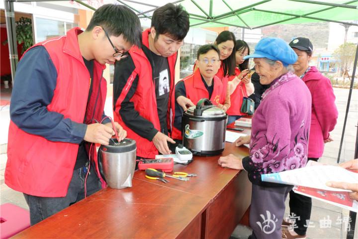 志愿者们把群众送来的家用电器一一进行了修理,发现多数是使用时间过长、煮饭时没把锅底的水擦干净或者是插电线出了问题等。志愿者告诉群众平时使用电器时间不宜过长,用完以后尽量关掉电源或者是拔掉插电线,不要让电器沾水,如果还有坏的可以拿到这边来修。