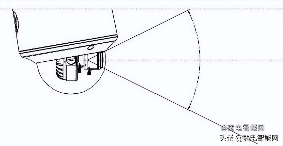 半球类产品吸顶装或墙装时,针对很深的走廊会由于摄像机本身角度限制有死角区域。此时需要斜底座来补偿角度(走廊模式)。