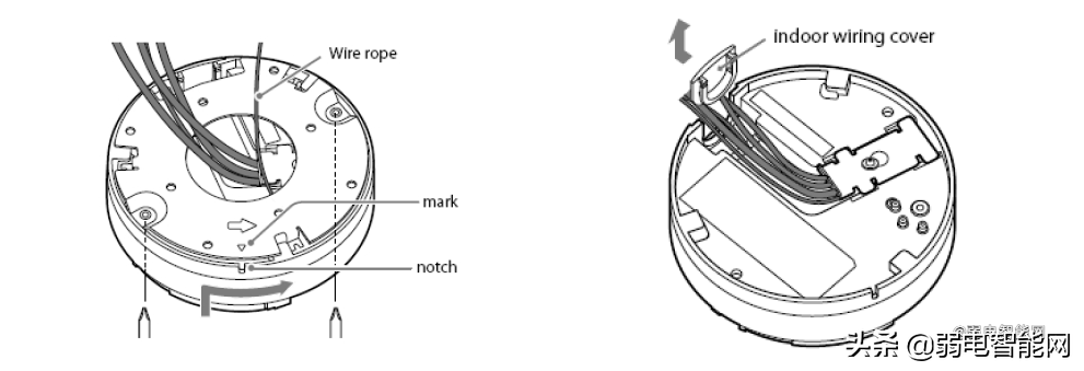 半球类产品出线无法直接穿过天花板,接线在摄像机外部而影响美观。通常会用到藏线盒,将线和接头置于藏线盒内部,外形美观。