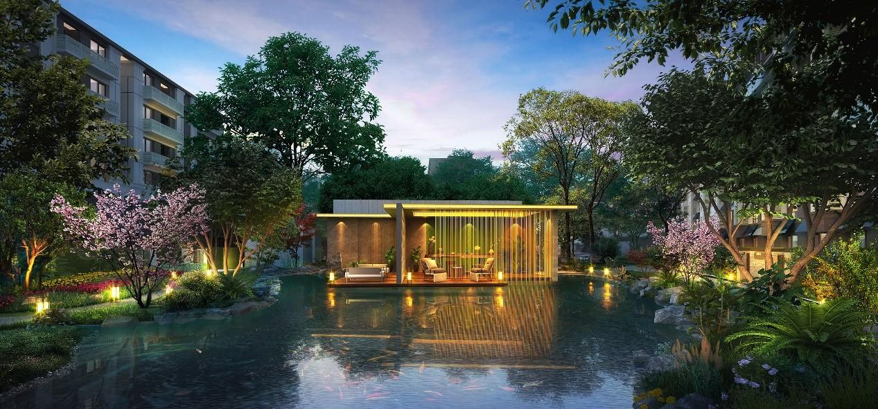 园区效果图。熙湖悦著在景观打造上以自然为师,打造山水龙园。