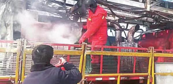 2月16日,黑龙江省大庆市铁人大道红卫村附近,一辆大型工程车后车厢突然蹿出明火,并伴有浓烟……正在巡逻的四名交警发现此情况后,迅速变身“消防员”,及时帮助司机扑灭火情,迅速消除了安全隐患。