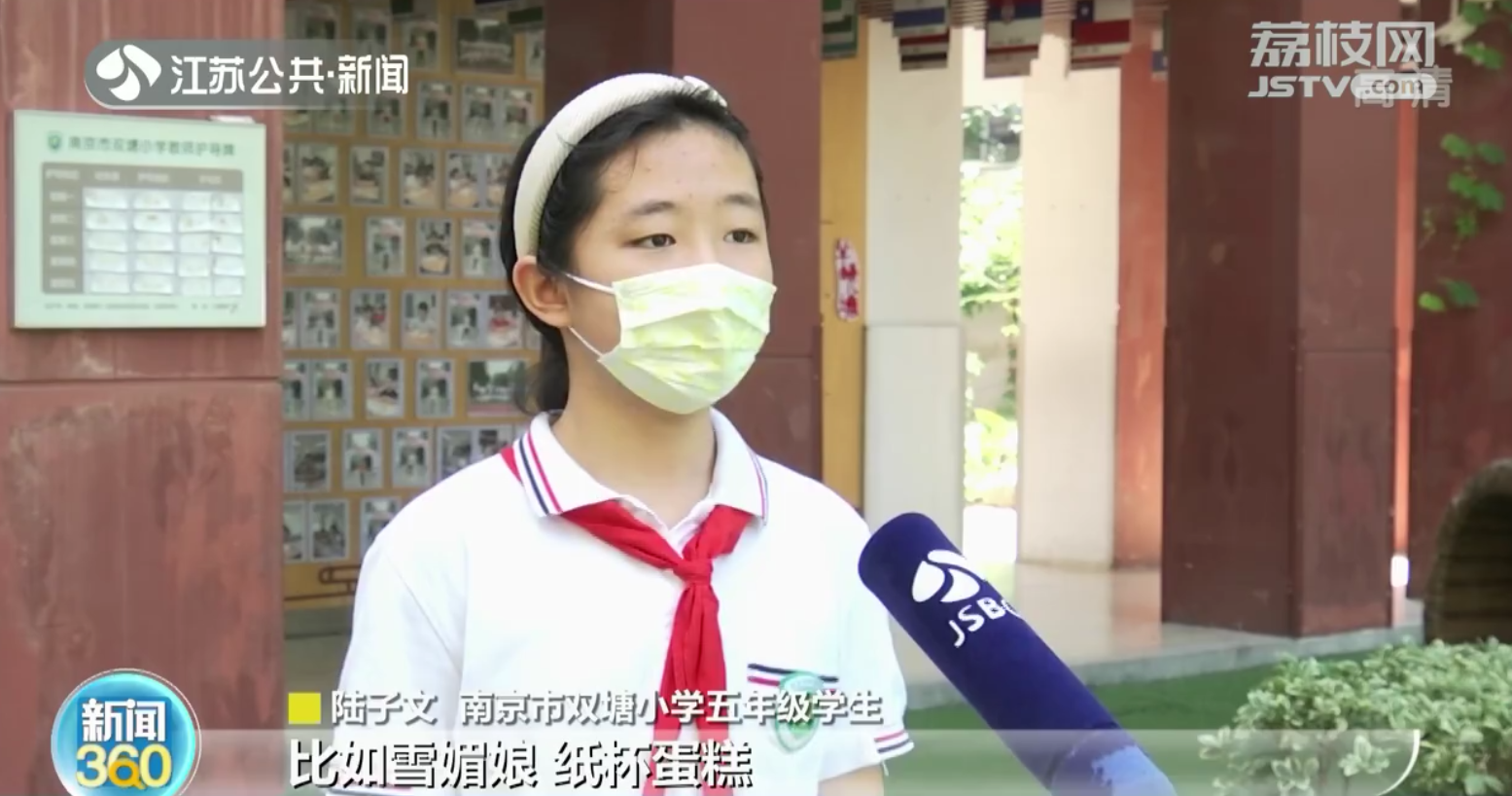 南京市双塘小学五年级学生陆子文说:“我会做七八道家常菜,有酸菜鱼、青椒炒肉丝和红烧肉等等,做的比较多的是一些甜品类的,比如雪媚娘、纸杯蛋糕、水果冰激凌。”